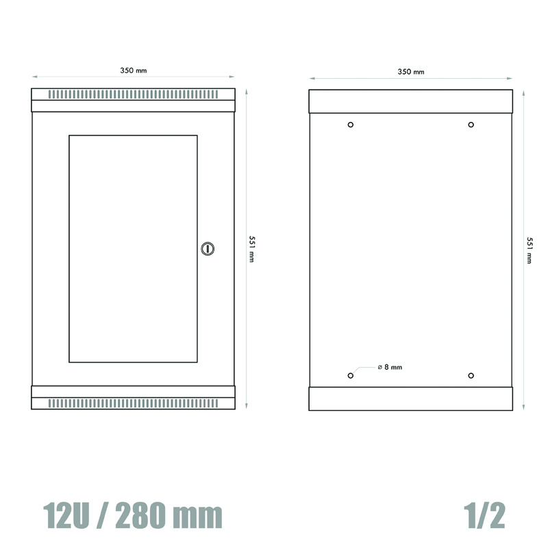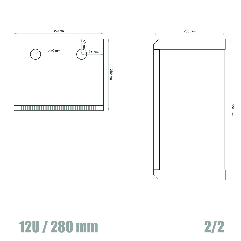 10" rack jednodielny 12U/280 DATACOM šedý Skl.dv.