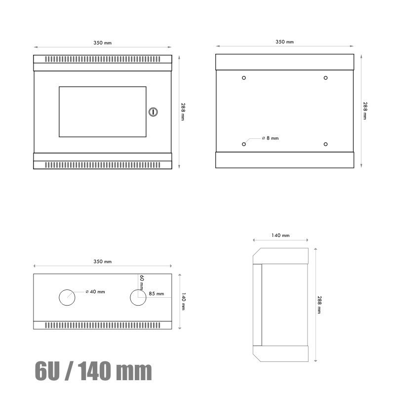 Popis 10" rack jednodielny 6U/140 DATACOM Šedý Skl.dv.