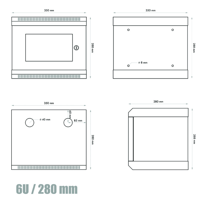10" rack jednodielny 6U/280 DATACOM šedý Skl.dv.