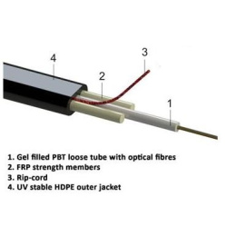 FLAT DROP FTTx je samonosný kabel navržený pro závěsné venkovní instalace.