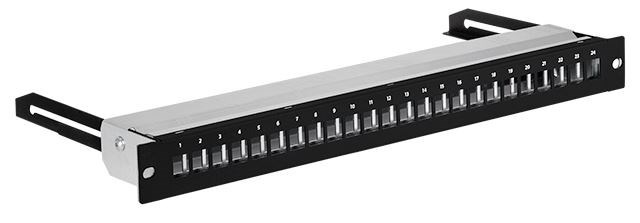 19" modulární stíněný patch panel LEXI-Net 24port, černý, výsuvný