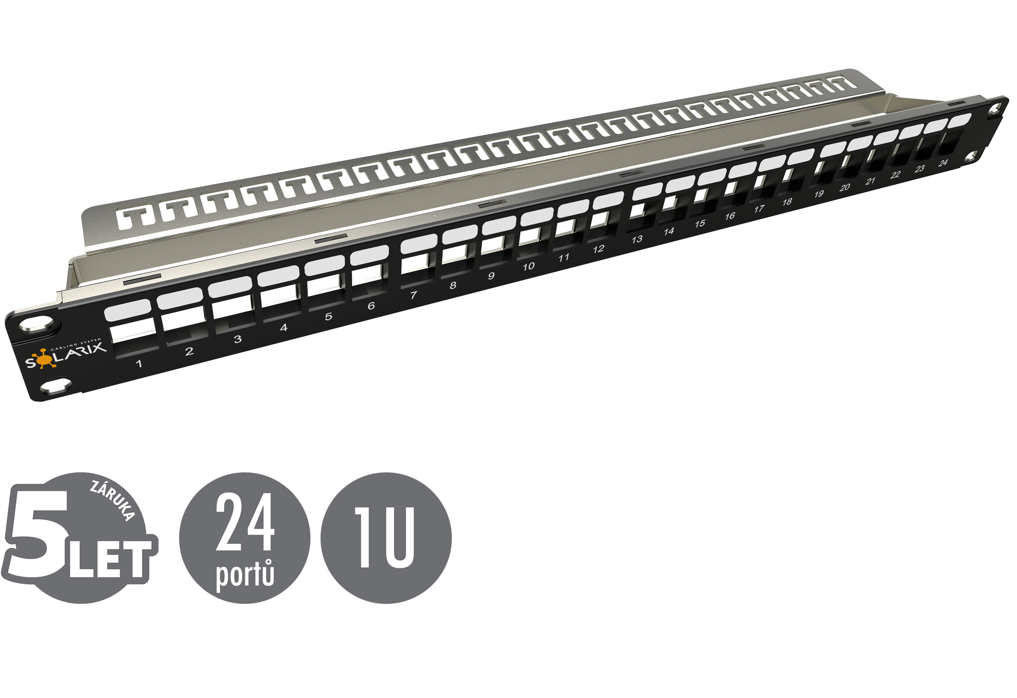 19" modulárny neosadený patch panel Solarix 24 portov 1U SX24M-0-STP-BK-UNI-N