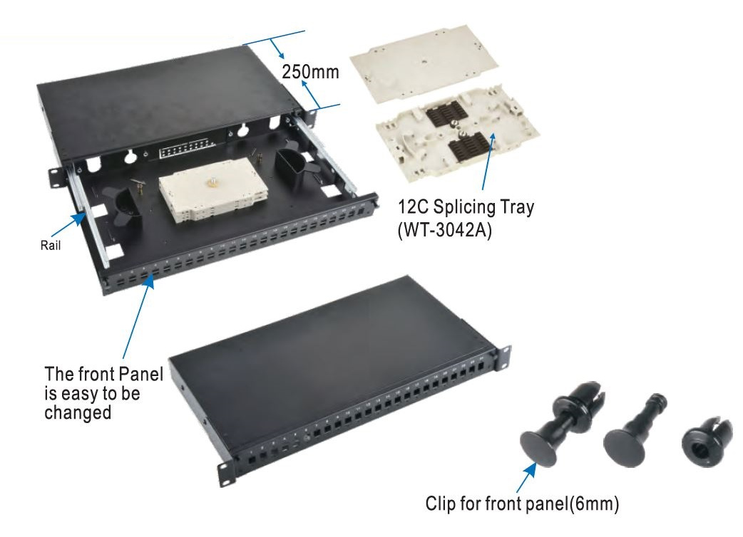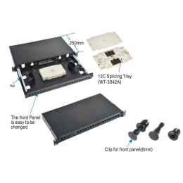 - V sestavě je jedna kazeta pro 24vláken- Hloubka vany 25cm. - Váha vany s kazetami 2,3kg; čelo vany 200g.