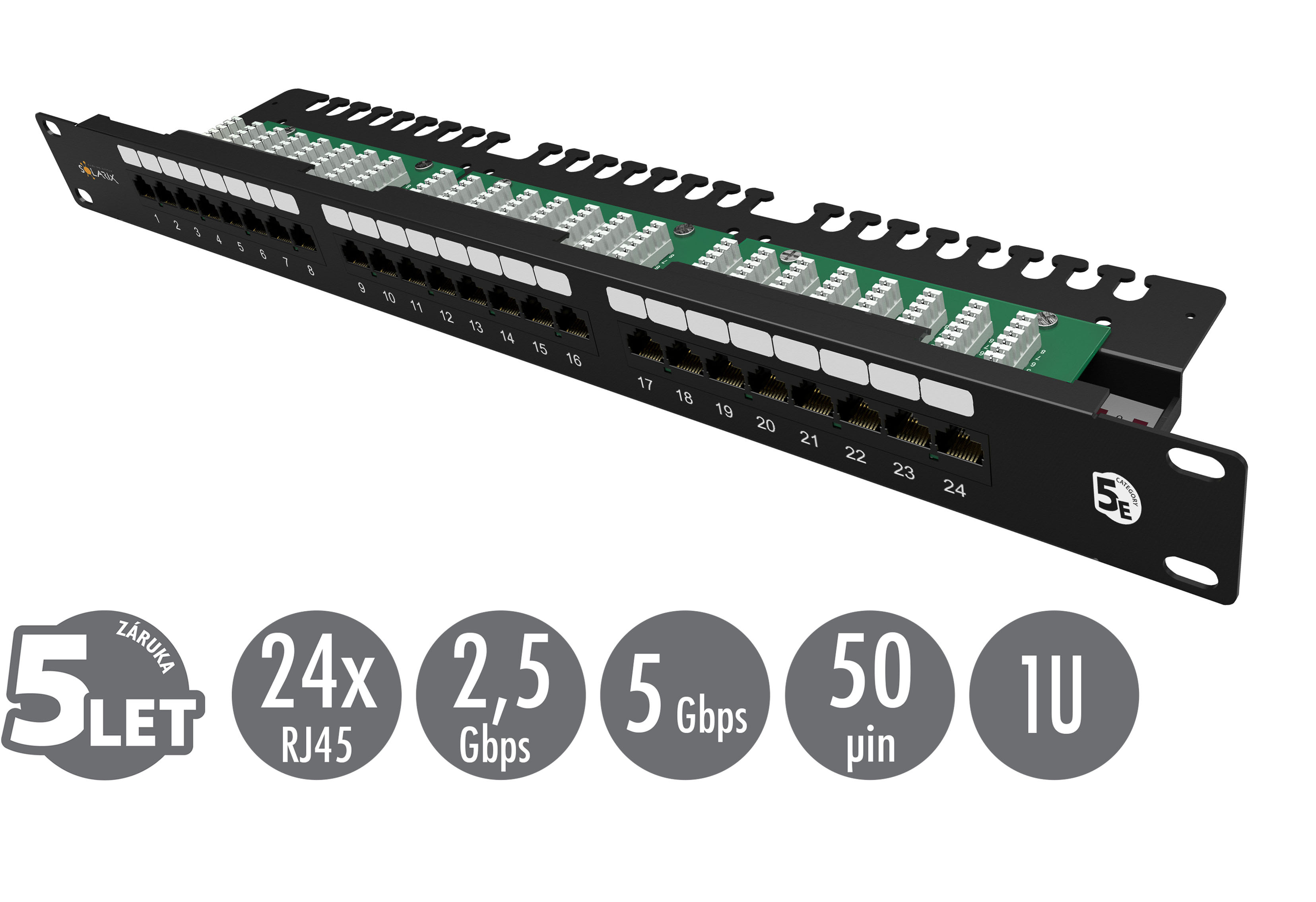 Patch panel Solarix s označením SX24L-5E-UTP-BK-N je panel osazený 24 porty RJ45, jehož součástí je vyvazovací lišta sloužící k přehlednému vyvázání a pevnému uchycení kabelů přímo k tělu panelu. Instalační kabel se zakončuje do duální IDC svorkovnice typu 110/Krone. Svorkovnice je z důvodu snadného zakončení kabelu označena podle standardu T568A i T568B. Stejně jako všechny ostatní komponenty strukturované kabeláže Solarix je tento panel vyroben tak, aby zaručoval maximální životnost, velmi dobrou funkčnost a především vysokou spolehlivost. Tento patch panel Solarix splňuje požadavky na komponenty kategorie 5E a třídy vedení Class D, které jsou definovány ve standardech ANSI/TIA 568, ISO/IEC 11801 a EN 50173, a to včetně všech nejnovějších dodatků. Barva patch panelu je černá; velikost v datovém rozvaděči je 1U. Součástí balení je 4x M6 montážní sada, a 24x vyvazovací pásek. Tento nový patch panel Solarix nahrazuje panel s označením SX24L-5E-UTP-BK.