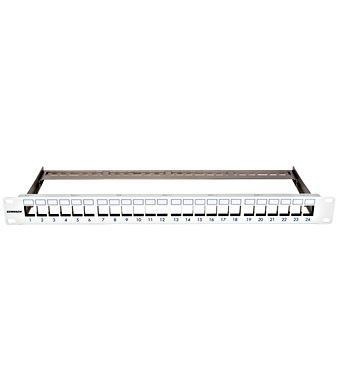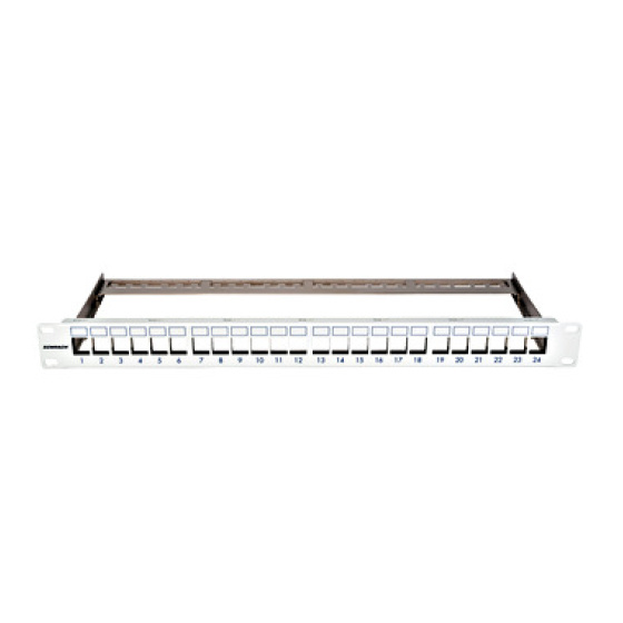 19" patchpanel pro max. 24 keystone,neosazený,1U,RAL 7035 Parametry patchpanelu:* Šířka: 483,00mm*