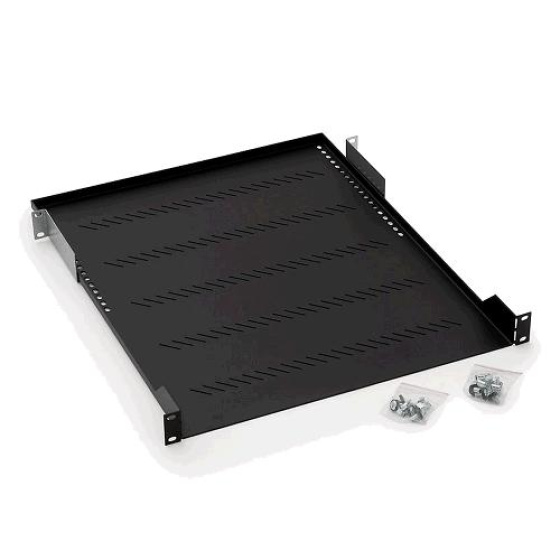 Polička Triton s perforací 1U/850mm specifikace: Barva: černá Velikost: 19", hloubka 850 mm