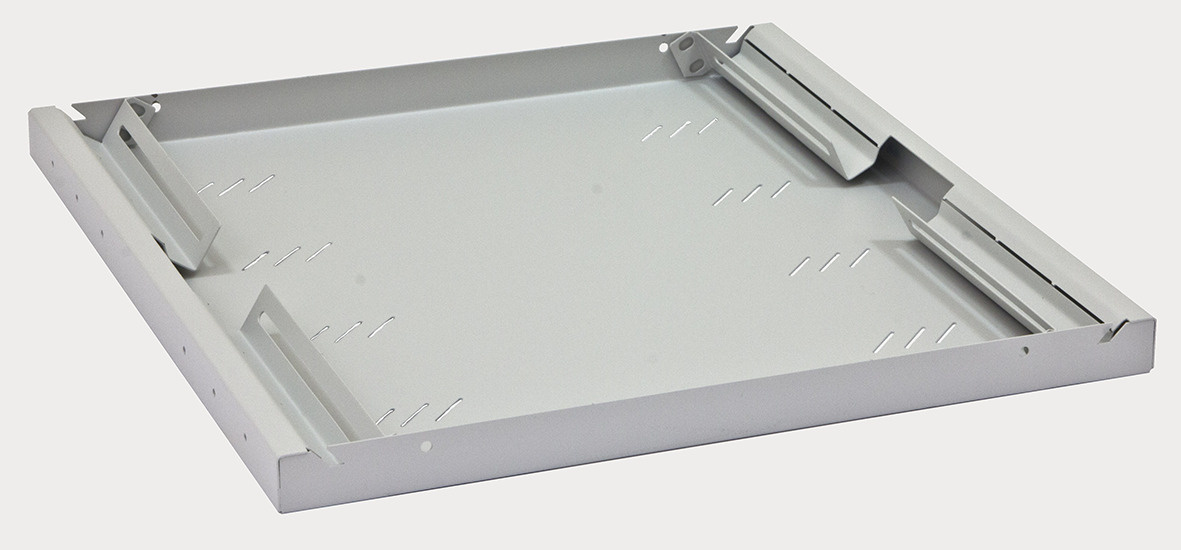 Popis 19' polica A4 perforovaná 1U/450mm,max.80kg sivá