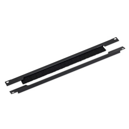 19" průchozí panel 1U rozdělený horizontálně, kartáč, otvor 350 x 21 mm.