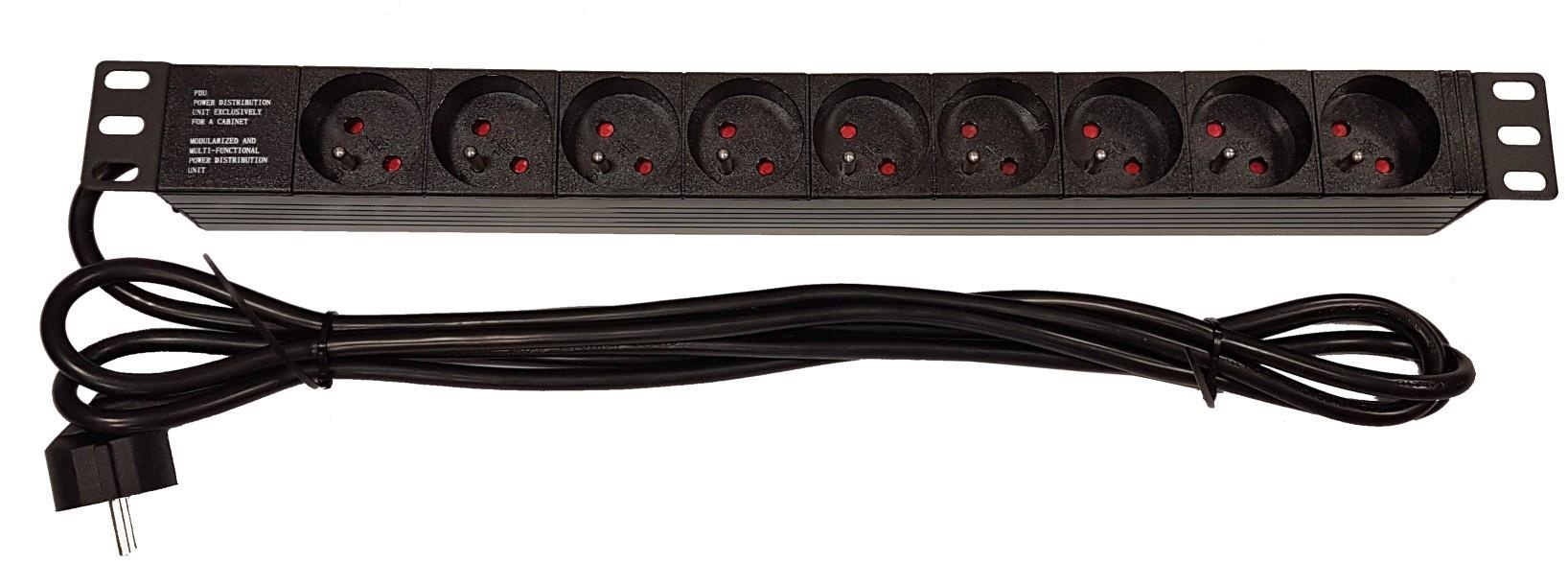 19" rozvodný panel LEXI-Net 9x230V, kabel 3m, 1U