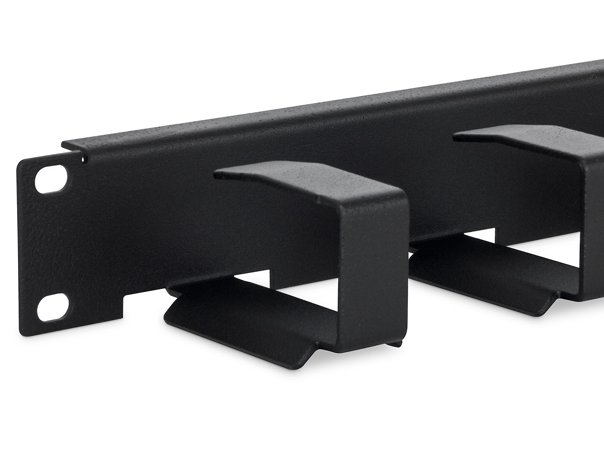 19" vyvazovací panel 1U celokovový, 6 x vyvazovací háček 70 x27 mm s náběhem proti poškození optických vláken a kabelů
