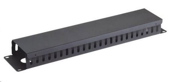 19" vyvazovací panel 2U, celokovový s krytem 90x45mm, průchozí, černý