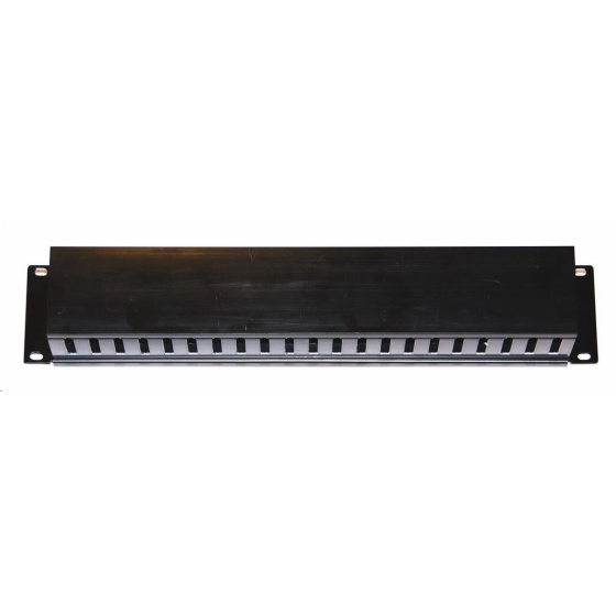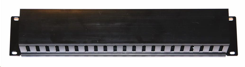 19" 2U, jednostranná plastová lišta, kovová zadná strana, čierna..