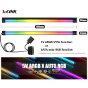 - možnosť zapojenia prostredníctvom 5V ARGB Sync konektora do základnej dosky PC alebo riadiča, alebo ak Vaše PC takúto možnosť nemá, stačí použiť SATA konektor a farebný režim bude fungovať sám bez nutnosti použiť riadič.