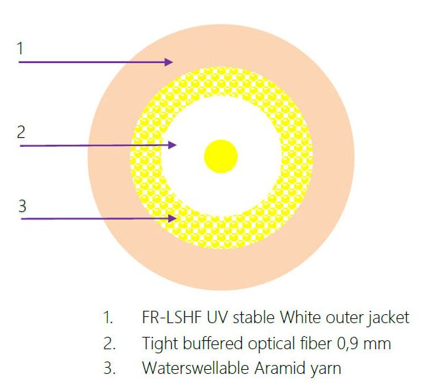 Díky použitému vláknu G657B3, které vykazuje minimální útlum i v 5mm makroohybu, v důledku čehož dokáže přenášet bez potíží světelný signál i v nepříznivé situaci nešetrného zkrutu. Je tedy mimořádně vhodný do náročných aplikací, jako jsou například frekventované kanceláře nebo prostředí bytu koncového klienta. Kabel je svojí konstrukcí flexibilní, a nedělají mu problém ani ostré úhly v kabelových lištách.