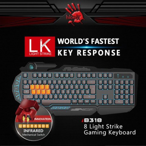 Elegantná herná klávesnica s neónovým podsvietením. 8 mechanických infračervených smerových tlačidiel. Skvelé na hranie hier alebo prácu.