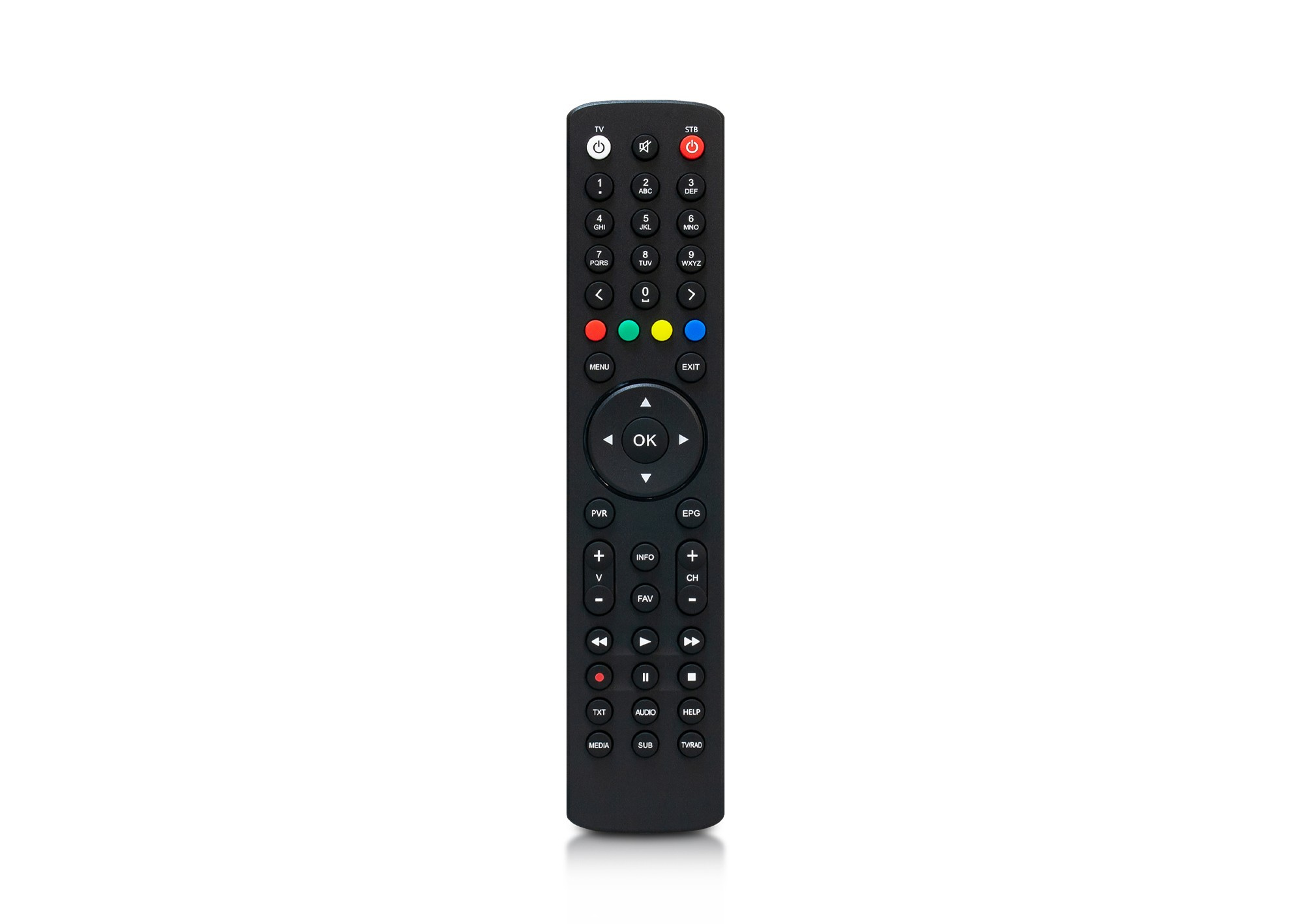 S týmto ovládaním môžete okrem prijímača zapnúť aj televízor a ovládať hlasitosť na Vašej TV. Intuitívne rozmiestnenie tlačidiel v ergonomickom slim dizajne a s matnou povrchovou úpravou pre elimináciu odtlačkov prstov. Segmentačné rozdelenie tlačidlových skupín. Farebné tlačidlá sú umiestnené v blízkosti tlačidla OK a smerových tlačidiel. Optimálnejšie rozdelenie tlačidiel pre orientáciu po hmate.