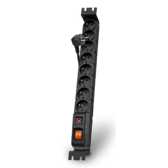 Popis Acar S8 FA Rack 3m kábel, 8 zásuviek, prepäťová ochrana, do racku, čierna