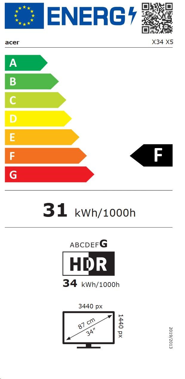 Popis ACER LCD Predator Predator X34X5bmiiphuzx,34" QD-OLED,3440x1440,250nits,0.01ms,HDMI,DP,Audio,Repro,Curved 1800R,Black