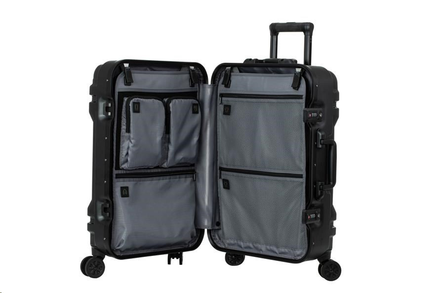 Kombinovaný zámek TSA zajišťuje ochranu vašich věcí a zároveň umožňuje celníkům rychle a bez poškození zkontrolovat vaše zavazadlo. Žádný zip! Dva obvodové hliníkové rámy zesilují konstrukci a zajišťují bezpečné a vodotěsné uzavření.