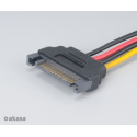 Přídavný konektor pro 4pin periferie, převádí 15pin SATA PSU napájení na 4pin PSU Molex konektor, určený pro ITX a ATX zdroje bez dostatečného počtu 4pin Molex napájecích konektorů, délka: 15cm.