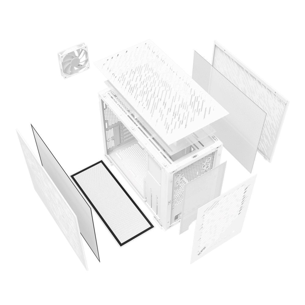 VALOR AIR NANO je kompaktná skrinka formátu m-ATX navrhnutá tak, aby poskytovala vysoký výkon pri malých rozmeroch. Podporuje grafické procesory s rozmerom až 370 mm a je vybavená nastaviteľným oporným ramenom, ktoré zabraňuje ohýbaníu. Vďaka priestoru pre radiátory až do 360 mm a šiestim ventilátorom zabezpečuje vynikajúci tepelný výkon. Panely bez náradia a päť odnímateľných filtrov na prach uľahčujú upgrade a údržbu, zatiaľ čo 35,6mm priestor pre vedenie káblov udržiava vašu zostavu čistú a organizovanú.