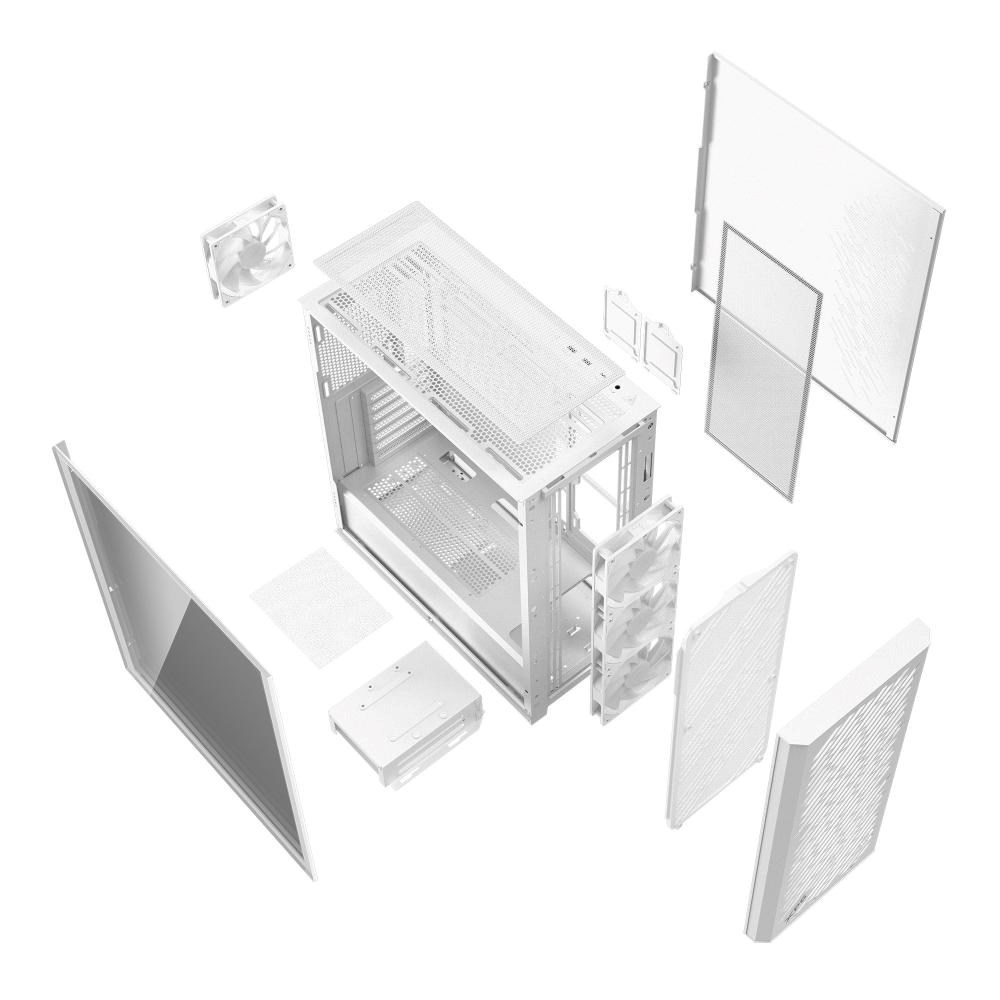 Prevedenie skrine:Midi Tower; Farba skrine:Biela; Počet pozícií 3.5" (HDD):2; Počet interných pozícií 2.5":2; Vybavenie PC skrinky:Predný Audio panel, Predný USB panel, Priehľadná bočnice.prečítajte si viac