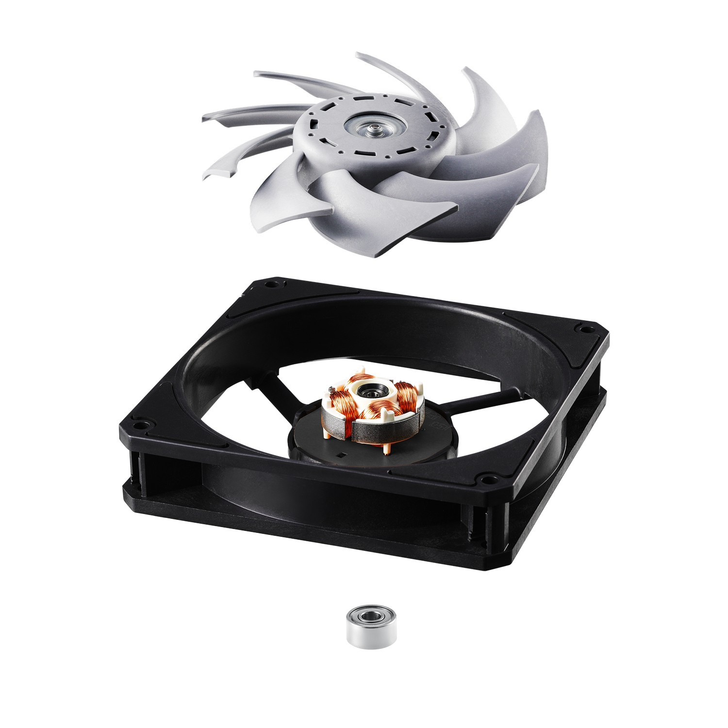 Vrtule ventilátoru důmyslně tvarována tak, aby snižovala rušivé frekvence hluku ventilátoru na jemnější „tón vibrací“, který lépe vyhovuje lidskému sluchu. Navíc se 4 protivibračními gumovými podložkami vytváří ventilátor XPG VENTO PRO 120 PWM pouhých 28dB(A) i při maximálních otáčkách 2 150 ot./min. (100% pracovní cyklus).