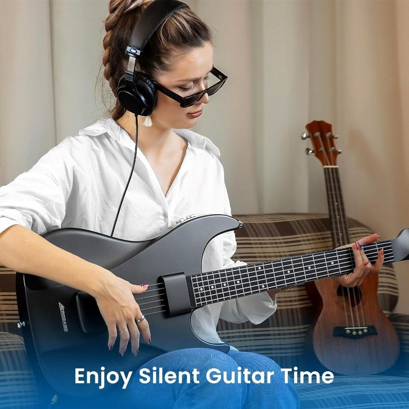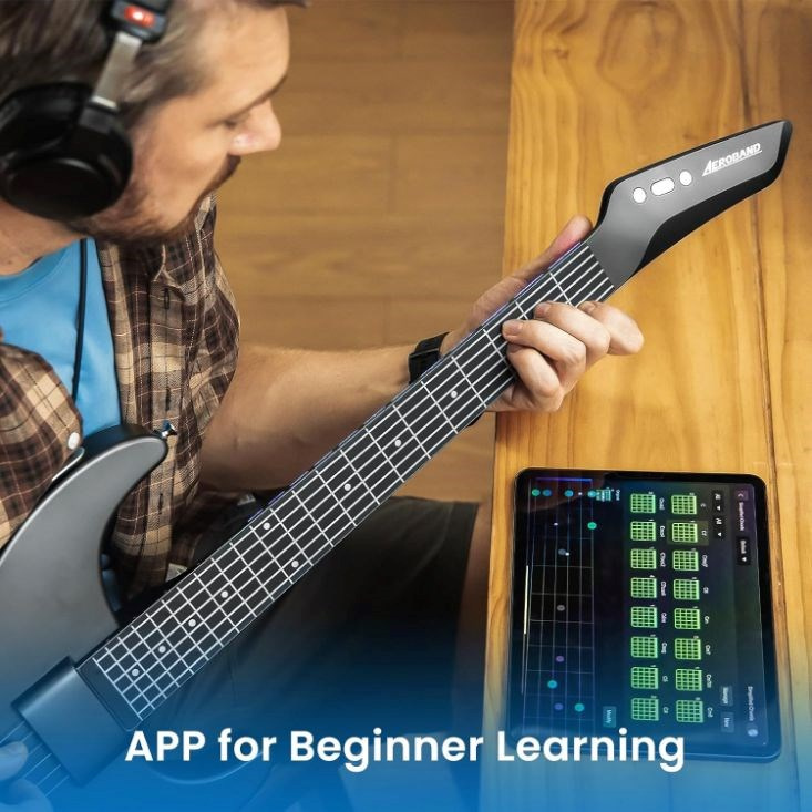 Gitara AeroBand definuje, čo znamená kompaktná gitara na cesty, a ponúka jedinečnú kombináciu moderných inovácií a tradičného pocitu. Táto bezstrunová prenosná inteligentná gitara kombinuje vlastnosti akustickej a elektrickej gitary, čo umožňuje všestranné a tiché hranie. Vďaka premyslenému dizajnu, ktorý obsahuje 3,5 mm konektor na slúchadlá, si môžete vychutnať hranie kdekoľvek v spálni, obývačke, vonku, v triede alebo v kancelárii bez toho, aby ste rušili svoje okolie. Odnímateľný hmatník navyše prispieva k jej prenosnosti, takže je ideálnym spoločníkom na cesty pre hudobníkov na cestách.