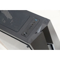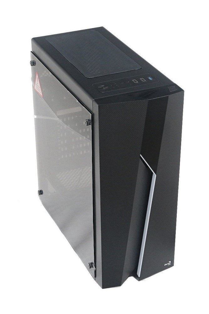 Počítačová skriňa so skleneným bočným krytom a RGB podsvietením panelu.