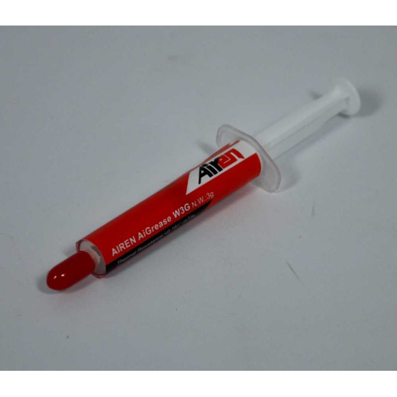 Velice kvalitní teplovodivá bílá pasta ve stříkačce AIREN GREASE AiGrease 3g s ideálním přenosem tepla, dokonalým roztíráním a jednoduchou aplikací.
