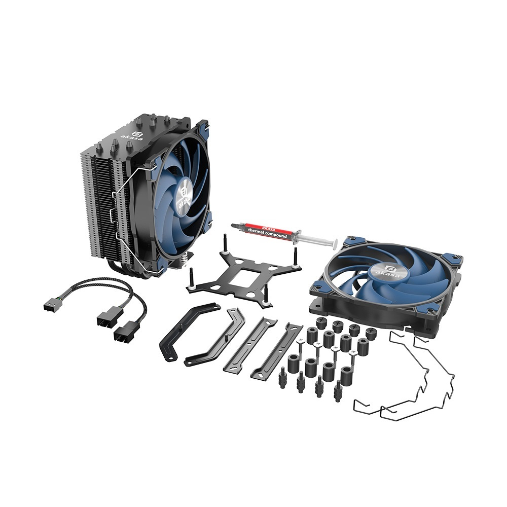 Bundle Tower chladiče CPU se dvěma ventilátory Akasa ALUCIA H4 Plus Premium * elegantní celočerný chladič s nastavením dvou ventilátorů * snadná instalace a široká kompatibilita * včetně ultra výkonné teplovodivé pasty (T5 ProGrade+), tlumicí podložky pro minimalizaci vibrací * inteligentní regulace rychlosti otáček * určeno pro CPU s maximálním TDP 210W * 4 vysoce vodivé trubice s technologií Direct Contact, která maximalizuje efektivní přenos tepla z CPU do žeber