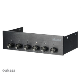 Specifikace: *Aplikace: regulátor ventilátorů pro 5,25" PC pozice *Počet kanálů: 6 ventilátorů *Regulace napětí: DC 0-12V (±10%) *Maximální zatížení: ax 1.67A (Per channel) *Délka knoflíků: 10.2 mm *Vstupní napětí: DC 5V , DC12V *Rozměry: 148.5 x 41.5 x 88 mm