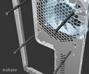 Černé gumové držáky ventilátorů skříně; eliminují vibrace a rezonance ventilátorů tím, že je izolují od skříně. Snadná instalace mnoha ventilátorů bez použití nářadí. Nutnost pro každého počítačového nadšence.