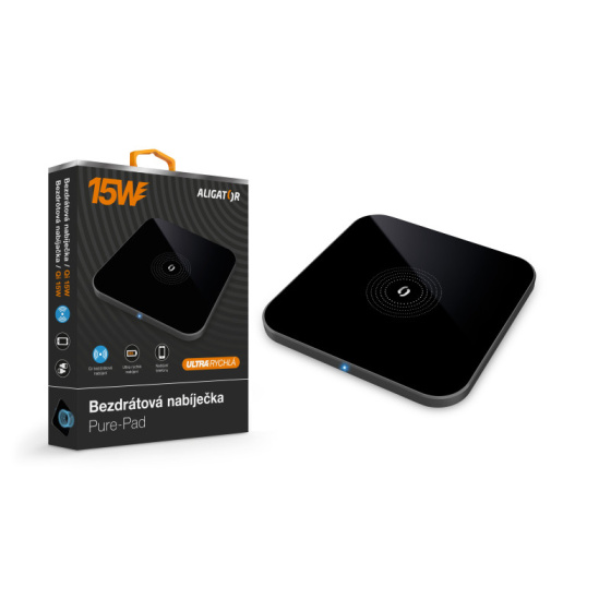 Popis ALIGATOR bezdrôtová nabíjačka Aligator Pure-Pad 15W, čierna