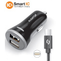 Popis ALIGATOR Chytrá nabíjačka do auta 3.4A, 2xUSB, smart IC, čierna, USB-C kábel