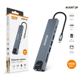 Aligator Dokovacia stanica USB-C/Hub 8v1 (USB-C/2xUSB/SD/MicroSD/HDTV/RJ45)