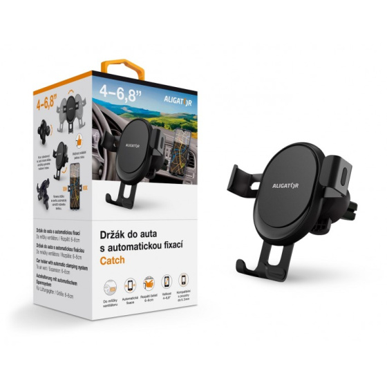Držák do auta HA18 Aligator Catch do ventilační mřížky, univerzální Gravitační univerzální držák pro mobilní telefony do auta ve velmi elegantním provedení nebrání řidiči ve výhledu a je kompatibilní s většinou mřížek ventilátorů.