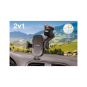 Univerzální držák pro mobilní telefony do auta s možností nastavení fixace. Pomocí vestavěné nano-podložky lze držák umístit na palubní desku i na čelní sklo. Díky speciálnímu mechanismu se přítlačné čelisti držáku roztahují pomocí tlačítka umístěného na zadní straně držáku. Naopak upevnění mobilního telefonu v držáku si manuálně uživatel nastaví přítiskem čelistí směrem k sobě, tak aby byl mobilní telefon pevně zafixován. Vycentrování mobilního telefonu v držáku zajistí manuálně výsuvná spodní čelist. Součástí spodní čelisti je průchodka pro možnost připojení nabíjecího kabelu. Praktické teleskopicky výsuvné rameno zajistí pohodlné nastavení vzdálenosti držáku od řidiče, navíc držák disponuje možností natočení mobilního telefonu v plném rozsahu 360°.