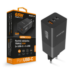 Materiál GaN (gallium nitride), umožňuje vyrobit velmi výkonnou nabíječku při zachování nebývale kompaktních rozměrů. Nabíječka je tak elegantním doplňkem a zároveň kvalitním pomocníkem při dobíjení mobilních telefonů, tabletů a jiných zařízení. Zvládne doplnit energii až třema přístrojům najednou - je totiž vybavena třemi porty: klasickým USB a dvěma ultra rychlými USB-C porty s výkonem až 65W.