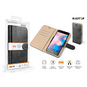 Dokonale propracovaný design, tenké provedení, přihrádky na kartu nebo vizitky, podélná kapsa na bankovky, zavírání pomocí magnetické přezky, snadné uchycení mobilního telefonu pomocí výsuvných čelistí z kvalitního plastu, které jsou určené pro opakované umístění telefonu.