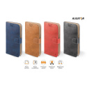 Dokonale propracovaný design, tenké provedení, přihrádky na kartu nebo vizitky, podélná kapsa na bankovky, zavírání pomocí magnetické přezky, snadné uchycení mobilního telefonu pomocí výsuvných čelistí z kvalitního plastu, které jsou určené pro opakované umístění telefonu.