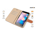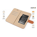 Dokonale propracovaný design, tenké provedení, přihrádky na kartu nebo vizitky, podélná kapsa na bankovky, zavírání pomocí magnetické přezky, snadné uchycení mobilního telefonu pomocí výsuvných čelistí z kvalitního plastu, které jsou určené pro opakované umístění telefonu.