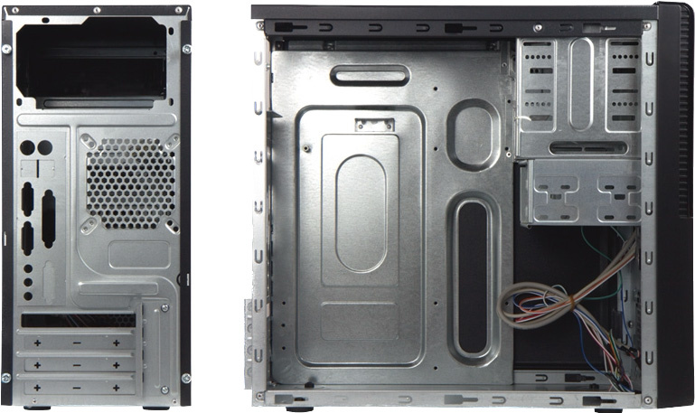 Rozměry: 450x372x172mm Hmotnost: 3,2kg Osazené ventilátory: 0 Prostor pro přídavné ventilátory: 1x 92mm nebo 80mm vzadu 1x92mm nebo 80mm vpředu Externí pozice: 2x 5,25" + 1x 3,5" Interní pozice: 2x 3,5" Vhodné pro MB : Micro ATX or ATX Vhodné pro PSU: ATX Porty: 2x USB 2.0 a audio AC97 / HD PSU: není osazen Barva : Černá/černá nebo černá/červená Modely: 2 bez potisku, 2 s potiskem Přepravní rozměry: 450x410x215mm Přepravní hmotnost: 3,8 kg Přepravní objem: 0,0396675 m3