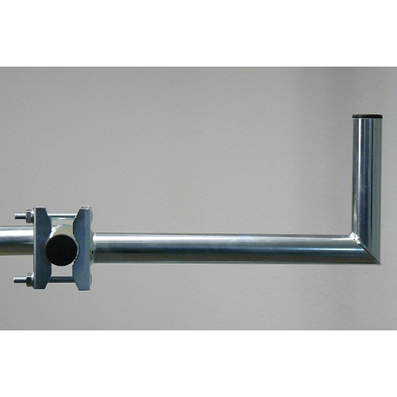 Držák vhodný k připevnění na balkónové zábradlí nebo vodorovnou trubku, pro uchycení satelitních parabol a větších antén.