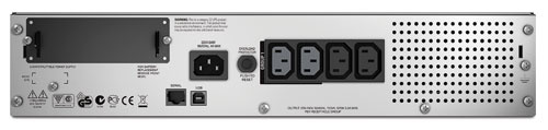 KOMUNIKACE A SPRÁVA Port rozhraní: RJ-45 10/100 Base-T, RJ-45 Serial, SmartSlot, USB Ovládací panel: Luminiscenční diody zobrazují stav: napájení ze sítě : napájení z baterie : vyměnit baterii : přetížení, Multifunkční LCD stavová a kontrolní konzola Zvukové upozornění: Upozornění na stav, kdy je systém napájen z baterie : zřetelné upozornění na nízkou kapacitu baterie : nastavitelná doba Nouzové vypínání (EPO): Volitelné