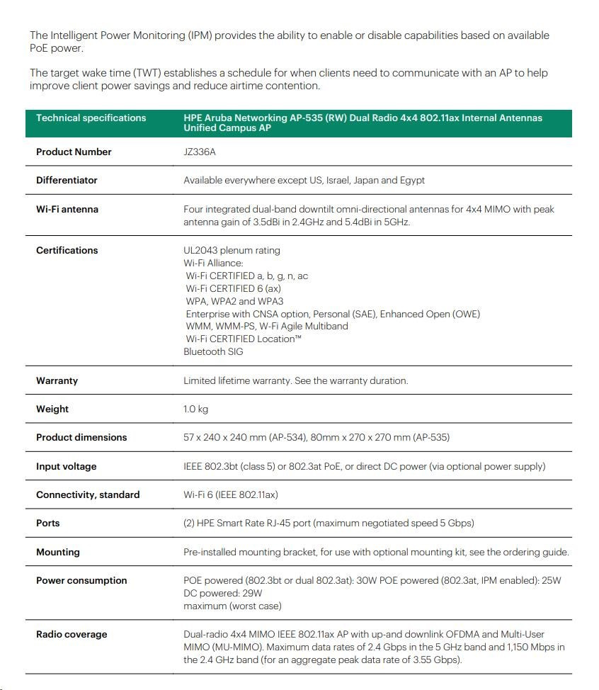 | Aruba 530 Series Campus Access Points | |