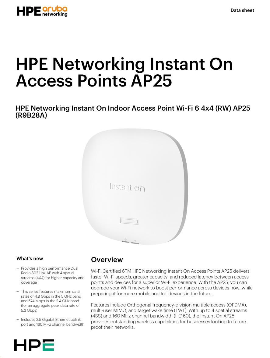 HPE Networking Instant On Indoor Access Point AP25 (Wi-Fi 6 4x4 RW R9B28A)