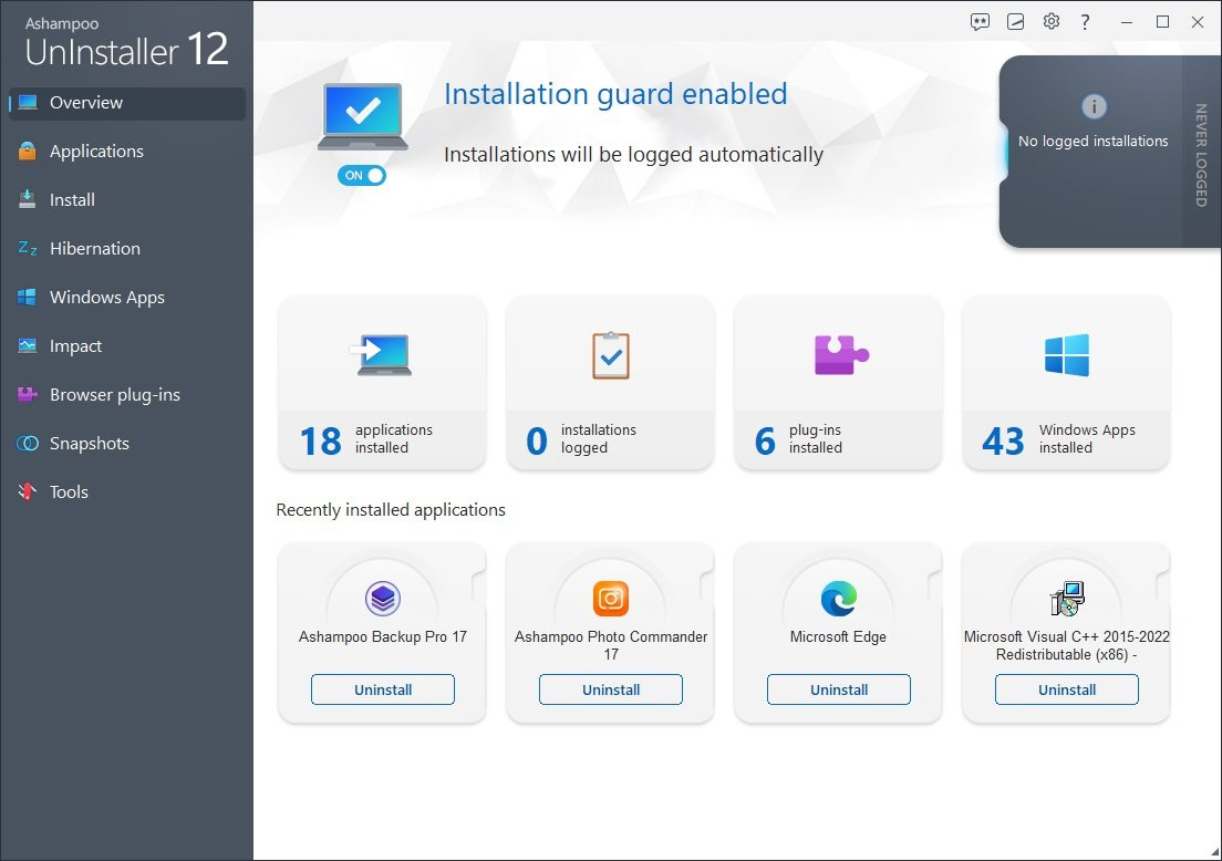 Nový Background Installation Guard v Ashampoo UnInstaller 15 vykonáva analýzu inštalácie v reálnom čase, ktorá je až 10x rýchlejšia ako predtým. Presne zisťuje začiatok a koniec inštalácie a lepšie podporuje vnorené alebo zriedkavé typy inštalácií. Či už skúšate nové programy alebo aktualizujete svoj obľúbený softvér, nášmu strážcovi nič neunikne, či už ide o menšie alebo väčšie úpravy systému. Zažite lepší výkon, presnosť a kompatibilitu!