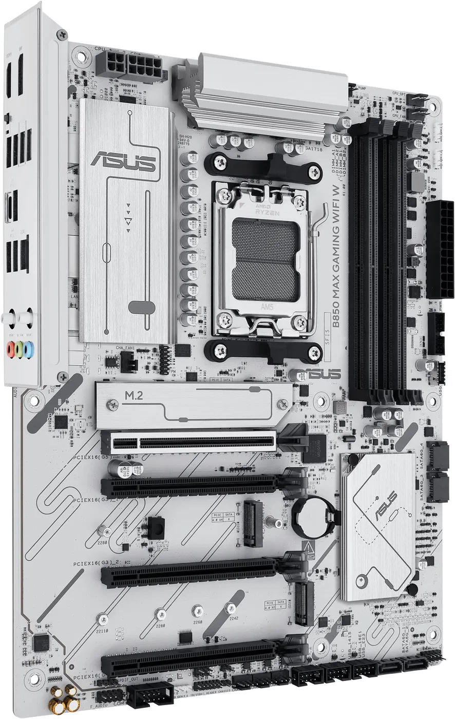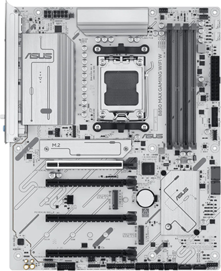 CPU: AMD Socket AM5 pro desktopové procesory AMD Ryzen™ řady 9000, 8000 a 7000 Chipset: AMD B850 Chipset Form Factor: ATX Paměť: 4 x DIMM sloty, max. 256 GB, DDR5 Podporuje až 8000+ MT/s (OC) s procesory Ryzen™ řady 9000, 8000 a 7000, ECC a Non-ECC nebufferované DIMM Dvoukanálová paměťová architektura Podporuje AMD Extended Profiles for Overclocking (EXPO™) ASUS Enhanced Memory Profile (AEMP)