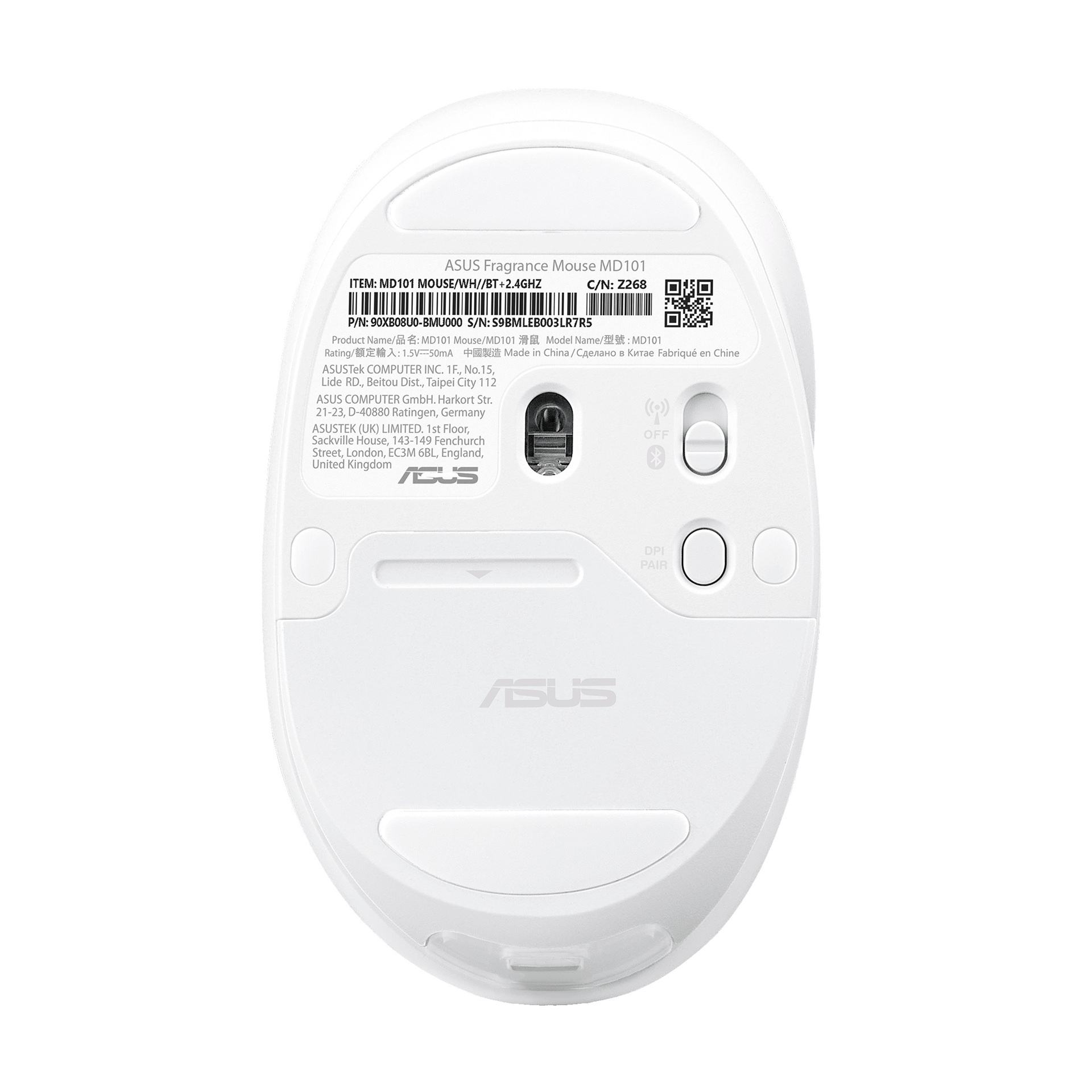 ASUS Fragrance Mouse MD101 je kompaktní, univerzální myš s ergonomickým designem a minimální hlučností, která se jako první myš ASUS může pochlubit vnitřní přihrádkou na vonné látky s plnitelnou lahvičkou na aromatické oleje a vůně.